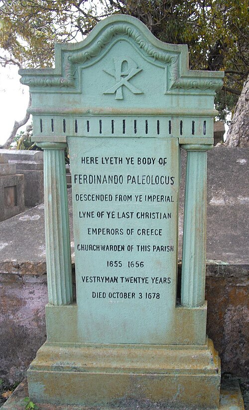 Pic: The gravestone of Fernando Paleologus (c. 1619–1670), also known as Ferdinando or Fernando Palaiologos. He was an Anglo-Greek settler in Barbados who worked as a planter of cotton, sugar, and pineapples, served as a churchwarden at St. John’s Parish Church, and claimed descent from the Palaiologos dynasty
